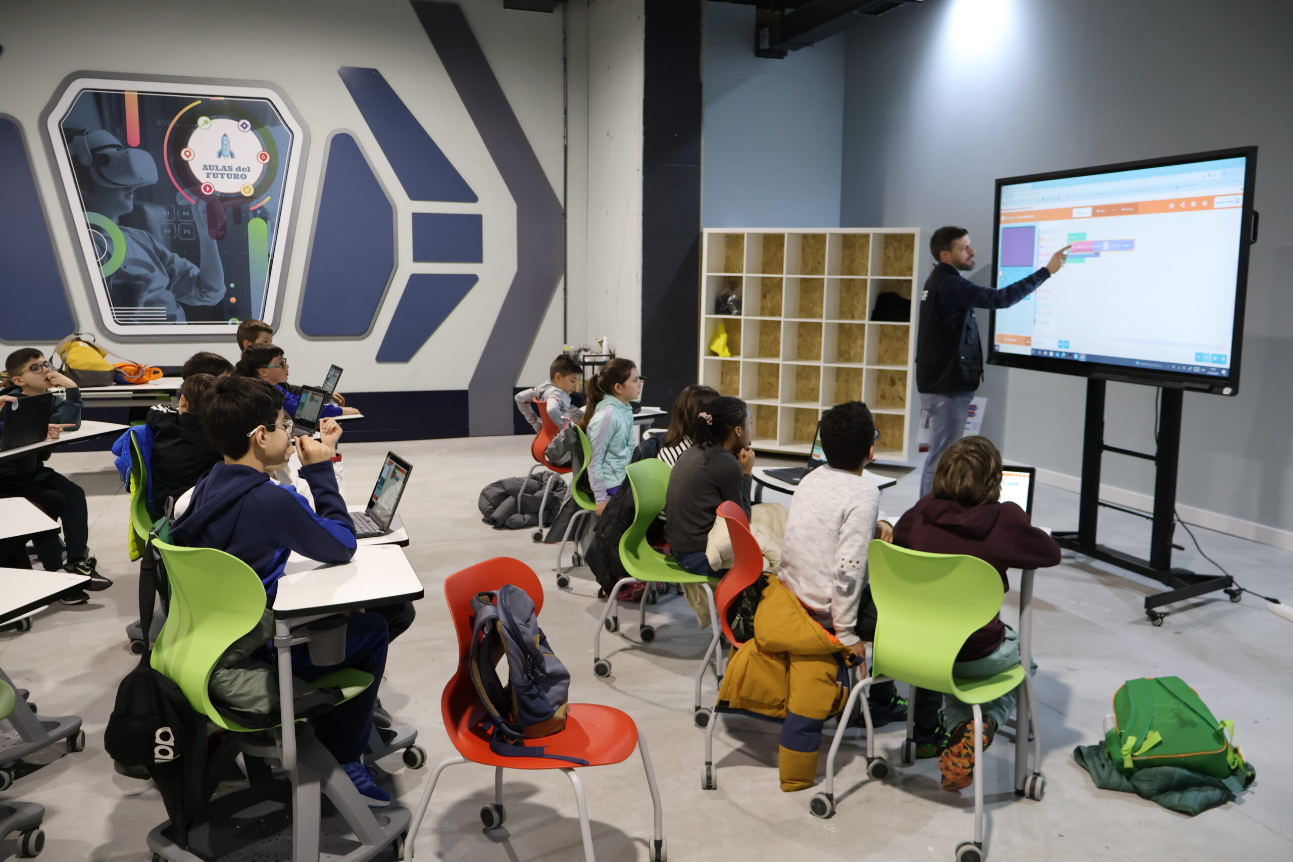 Un espacio tecnológico móvil con talleres prácticos, ideal para jornadas escolares o ferias.